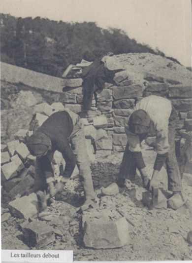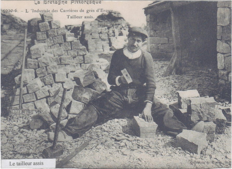 Parallèlement, les carrières artisanales se multiplient à Tu-es-Roc. Du sémaphore à la Pouillouse, on en compte une douzaine qui emploient plusieurs dizaines d’ouvriers. Comme les carrières industrielles, elles bénéficient des progrès de la métallurgie qui proposent des aciers carburés de plus en plus dur et résistants. L’extraction du grès quartzite rose devient plus facile et sa taille mieux maitrisée malgré sa dureté et son abrasivité. Une main d’œuvre très qualifiée se fait jour, réalisant parfois des prouesses qui enrichissent le patrimoine architectural d’Erquy (clocher de l’église, chapelle des marins, ornementation de constructions bourgeoises, monuments funéraires…) De plus, à la fin du 19ème siècle et au début des années 1900, les constructions balnéaires se font jour, alimentant de nouvelles commandes pour une nouvelle architecture qui façonne à son tour le paysage.