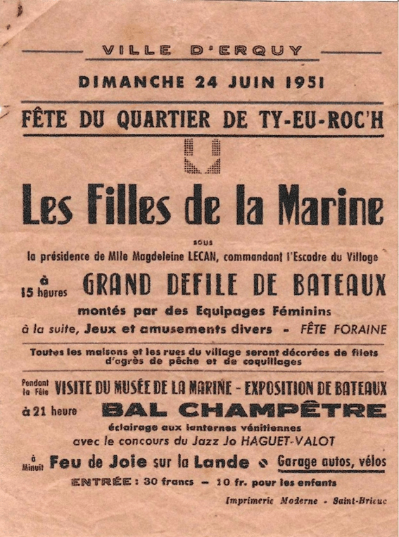 La découverte des bans de praires puis de coquilles Saint-Jacques dans les années 50 et 60 a profondément modifié le métier et grandement amélioré le sort des pêcheurs actuels. Aujourd’hui, Tu-es-Roc est un village qui se vide doucement. Plus de cris d’enfants. Les commerces ont tous disparu depuis longtemps, les maisons sont souvent fermées dix mois de l’année ou plus et les pêcheurs ont déserté ce quartier typique pour d’autres lieux d’Erquy plus accessibles et propices à leur activité. Nos anciens disparaissent les uns après les autres. Pourtant, quelques descendants de ces familles de pêcheurs, dont je fais partie, s’accrochent encore à ce Roc, à leurs souvenirs et ont la chance d’avoir parfois conservé la maison familiale et d’y vivre toute l’année. (Maryvonne Lecan-Chalvet)