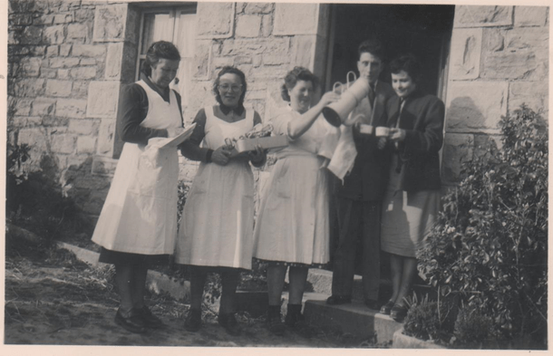 « Je me souviens aussi de la cuisinière, une brave femme, Eugénie Chrétien, aujourd’hui décédée, originaire de Saint-Gouéno, je crois. Elle s’occupait de tout, mais en particulier des commandes pour la cuisine. On se faisait livrer chez les grossistes de Lamballe, Niclasse et Sabot ».