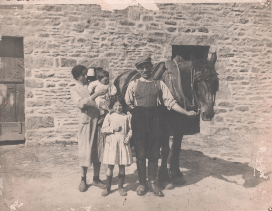 Mes parents et mes deux sœurs avec le cheval qui a été réquisitionné.